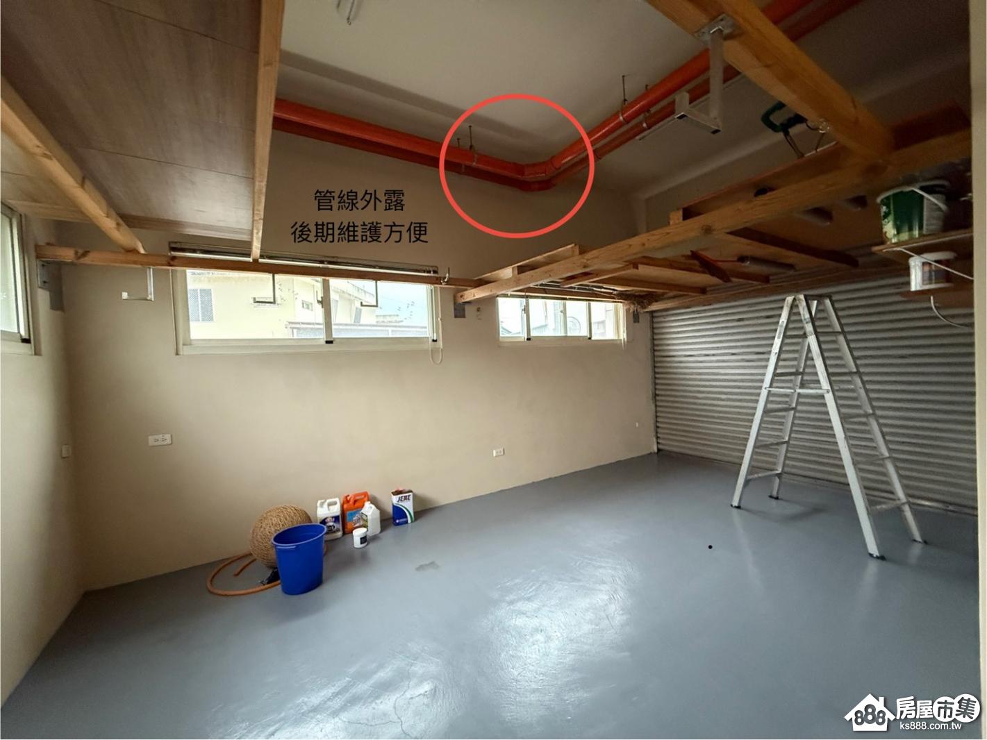 室內隔間牆照承重牆施作,排水管採外露,利於後續檢修。